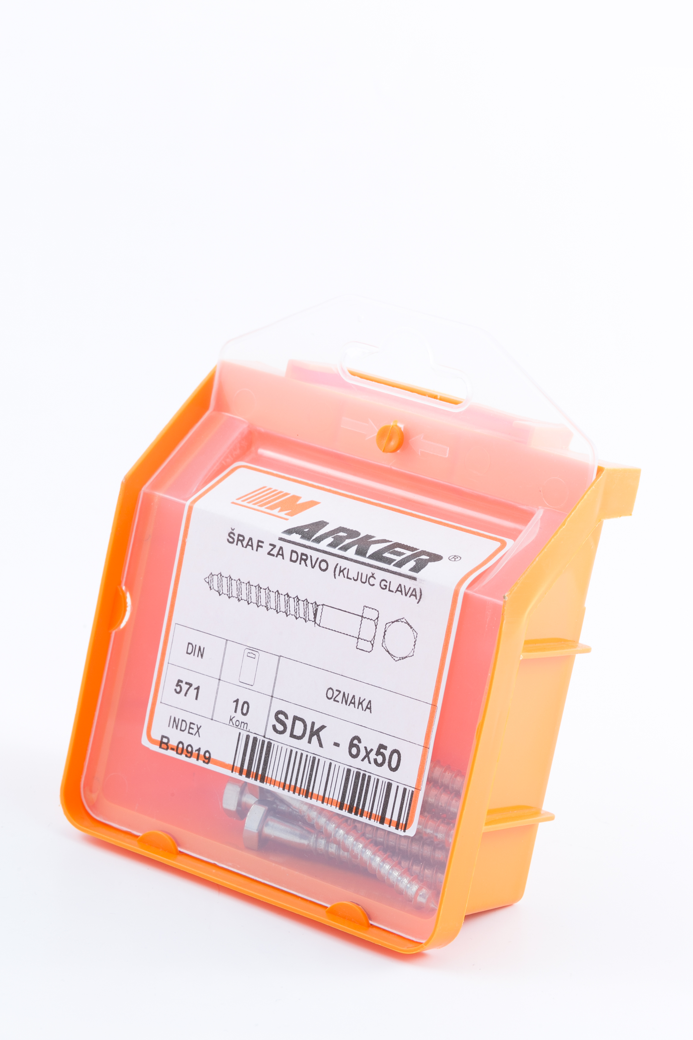 Blister vijaka za drvo / Ključ glava / B - SDK 6x50 / 10kom - M je visokokvalitetan proizvod koji vam omogućava sigurno i efikasno pričvršćivanje drvenih materijala. Svaki blister sadrži 10 komada vijaka veličine 6x50 mm, koji su idealni za širok spektar drveta i drvenih konstrukcija.