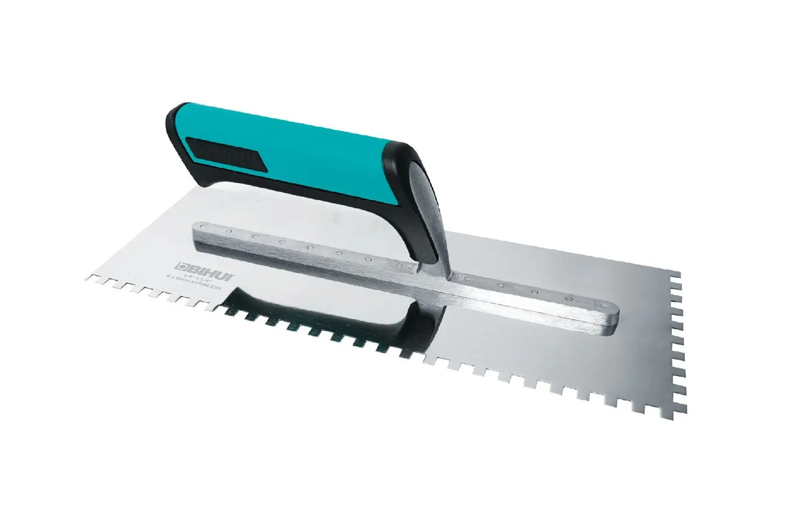 Premium nazubljena gleterica BIHUI PTSL sastoji se od ergonomske, mekane drške i lopatice (sečiva) od kvalitetnog nerđajučeg čelika debljine 0,7mm. Drška je pričvršćena za sečivo sa 13 zakovica. Izdržljiva “Heavy Duty” gleterica sadrži raspone (veličine) useka pogodne za svaki posao.