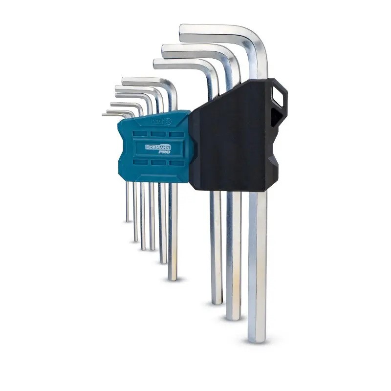Set od 9 kom. produženih šestougaonih Imbus ključeva BORMANN Pro BHT7244 veličina od 1,5–10 mm napravljeni su od izdržljivog hrom-vanadijumskog čelik. Ključevi su blago zakošeni na vrhovima radi lakšeg pozicioniranja (postavljanja). Dolaze u praktičnom plastičnom pakovanje sa označenim mestom za svaki ključ radi lakšeg čuvanja.