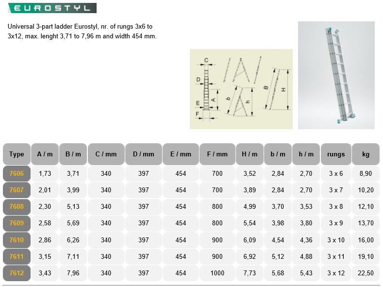 Eurostyl - Merdevine - 3x7 su visokokvalitetne merdevine koje pripadaju renomiranom brendu Eurostyl. Ove merdevine su dizajnirane i proizvedene sa pažnjom i preciznošću, kako bi pružile sigurnost i pouzdanost prilikom korišćenja. Sa dimenzijama 3x7, ove merdevine su savršen izbor za različite zadatke i radove u kući ili na gradilištu.