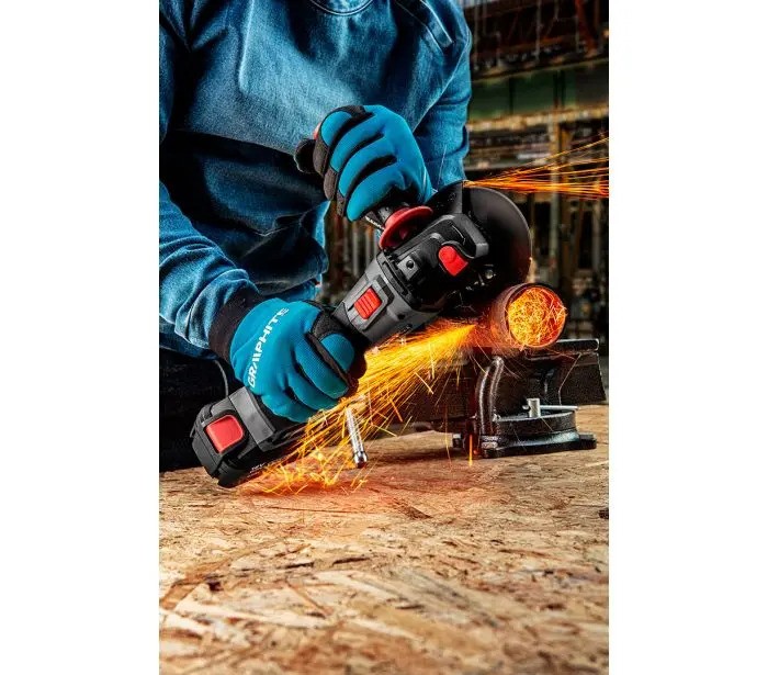 Ugaona aku. brusilica bez četkica 58G026, kompatibilna sa 18V Li-Ion GRAPHITE Energy+ baterijama. Rotor 125 x 22,2 mm, 10.000 o/min, navoj vretena M14, bočna ručka u tri položaja, težina 1,7 kg. Uređaj dolazi bez baterije i punjača.