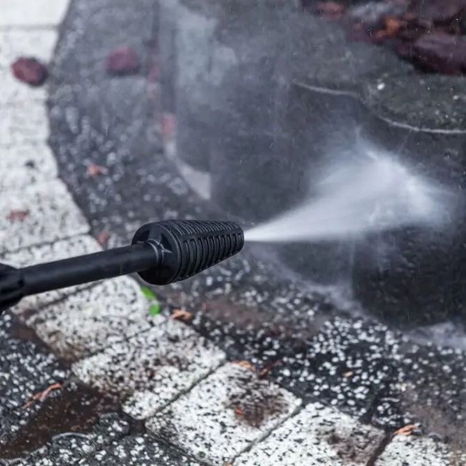 Uređaj je opremljen aluminijskom pumpom i kompletom pribora, uključujući posudu za deterdžent, držač opreme, četku i šipku za čišćenje mlaznica. Turbo koplje je koristan dodatak koji skraćuje vreme potrebno za čišćenje. Kombinuje snagu uskog mlaza sa preciznim pokrivanjem područja, tako da možete očistiti veće područje u jednom potezu.