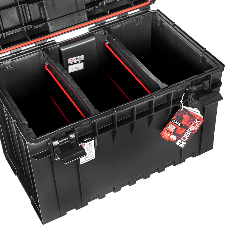 Kutija Qbrick System One 450 Vario je vrlo velika i funkcionalna modularna kutija zapremine 52 l, dizajnirana za transport i skladištenje ručnog alata, električnog alata i pribora. Svaka kutija za alat opremljena je fleksibilnom zaptivkom koja pruža potpunu zaštitu od prašine i vode. Unutar kutije nalazimo dva odvojiva odeljka sa elastičnim trakama za zaštitu komponenti od oštećenja. Poklopac serije Vario omogućava povezivanje sa kutijama ONE i PRO 500 i 600, ONE CART mobilnim sistemom, klaserom ONE XL, što uveliko povećava raspon mogućnosti za stvaranje mobilne radionice.