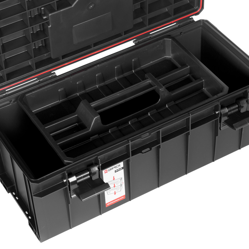 Kutija Qbrick System Pro 600 Basic je kombinacija najboljih karakteristika u svojoj klasi: elastična zaptivka (zaustavlja prodor vode i prašine), prorez za sečenje na poklopcu, poliamidni zatvarači i bočni konektori, ergonomska ručka i duboka posuda. Zahvaljujući čvrstim, poliamidnim bočnim konektorima PRO 600 Basic se može kombinovati sa ONE Cart i PRO Cart, dodatnim PRO 600 kutijama stvarajući prostrane, univerzalne i praktične setove za nošenje raznih alata.
