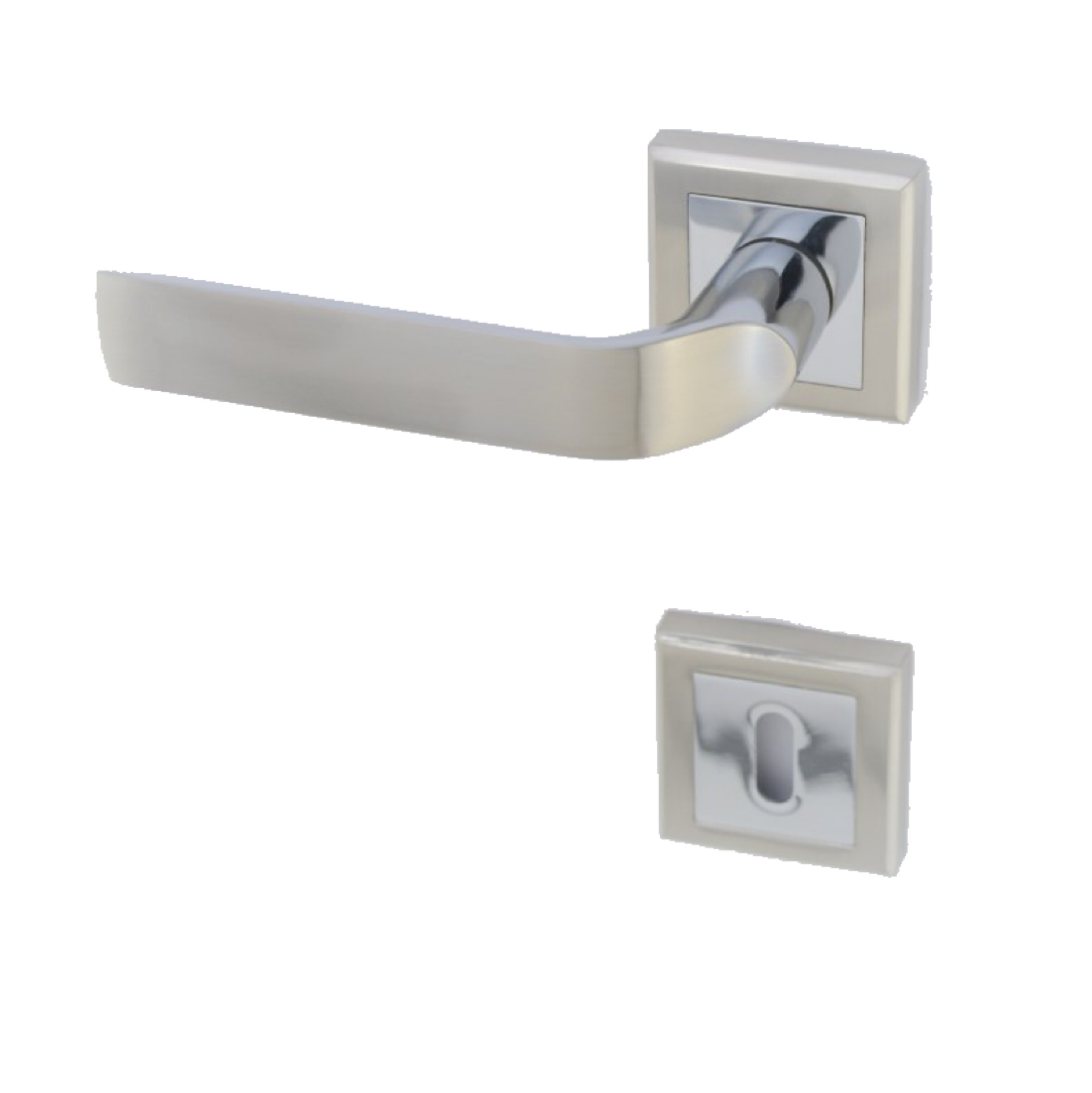 Izrađena od kvalitetnih materijala, ova kvaka sa rozetom je presvučena matiranom hromiranom bojom, pružajući modernu i sofisticiranu estetiku. Njena glatka tekstura pruža prijatan dodir, dok precizno izrađen mehanizam omogućava lako i tiho otvaranje i zatvaranje vrata.