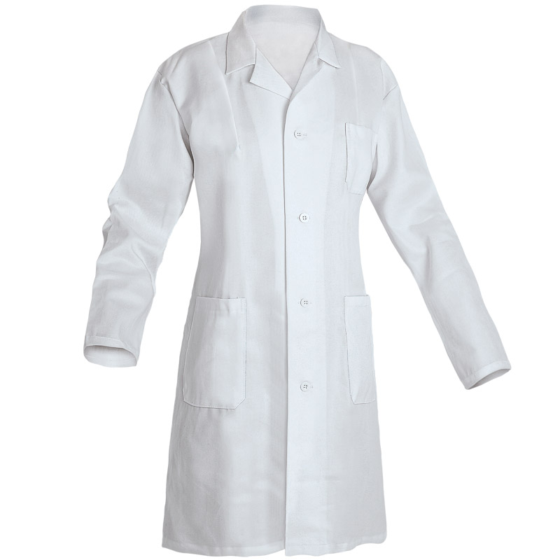 Radni mantil, ženski model, udoban, klasičan kroj, praktični džepovi, kopčanje dugmadima, dostupan u beloj boji (100% pamuk) ili u teget boji (diolen).